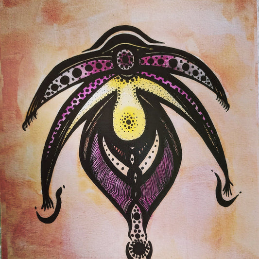 Abstract Female Yoni Art Print, Giclee Print on Fine Art Paper, Anatomy, Vulva, Clitoris, Watercolor Painting, Ink Drawing, Feminist Art