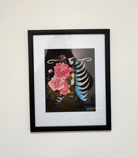 Floral Anatomy, Thoracic Cage, Anatomy Art, Acrylic Painting, Giclee Print on Fine Art Paper
