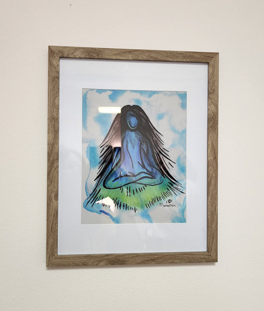 Island Mountain Woman Art Print, Te Fiti, Peaceful Clouds, Watercolor Painting, Nature, Giclee Print on Fine Art Paper