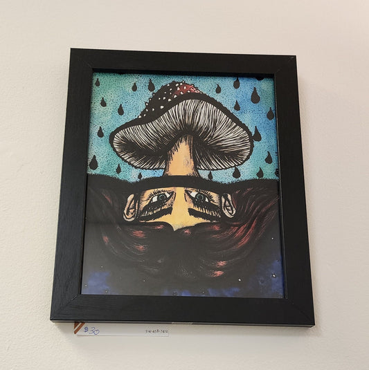 Mushroom Rain, Cottagecore Art, Watercolor, Ink, Pen, Giclee Print on Fine Art Paper